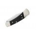 112BKSA - ще одна варіація легендарного Buck 112! На цей раз Buck презентують автоматичну версію з больстерами з нойзільбера. Нойзільбер (від нім. Neusilber - «нове срібло»). Нойзільбер - сплав з трьох компонентів на основі міді. Крім неї, до його складу входять 13,5-16,5% нікелю і 18-22% цинку. Всякий нойзільбер містить мідь, цинк і нікель, але не завжди в одних і тих же вагових відносинах. Взагалі можна прийняти, що половина або дві третини його зазвичай складаються з міді, нікелю ж в ньому здебільшого менше, ніж цинку. Нойзільбер давно відомий у китайців під назвою pack-fong, що означає «біла мідь»; у французів він називається maillechort або argent d'Allemagne, у німців - Argentan або Neusilber, y англійців - German silver. Ніж отримав досить стандартну форму клинка, сконструйованого в форм-факторі bowie, має гладку ріжучу кромку, що дозволяє значно спростити процес заточування і експлуатації, а так само збалансовані спуски дозволяють витримувати значні поперечні навантаження. З боку обуха розташована спеціальна перфорація, значно полегшує відкриття леза, і уберігає його від зайвих подряпин. Матеріалом для виготовлення клинка стала преміальна сталь S30V. Дана модель відкривається шляхом натискання кнопки на рукояті. Закриття у ножа ручне за допомогою замка типу back-lock.