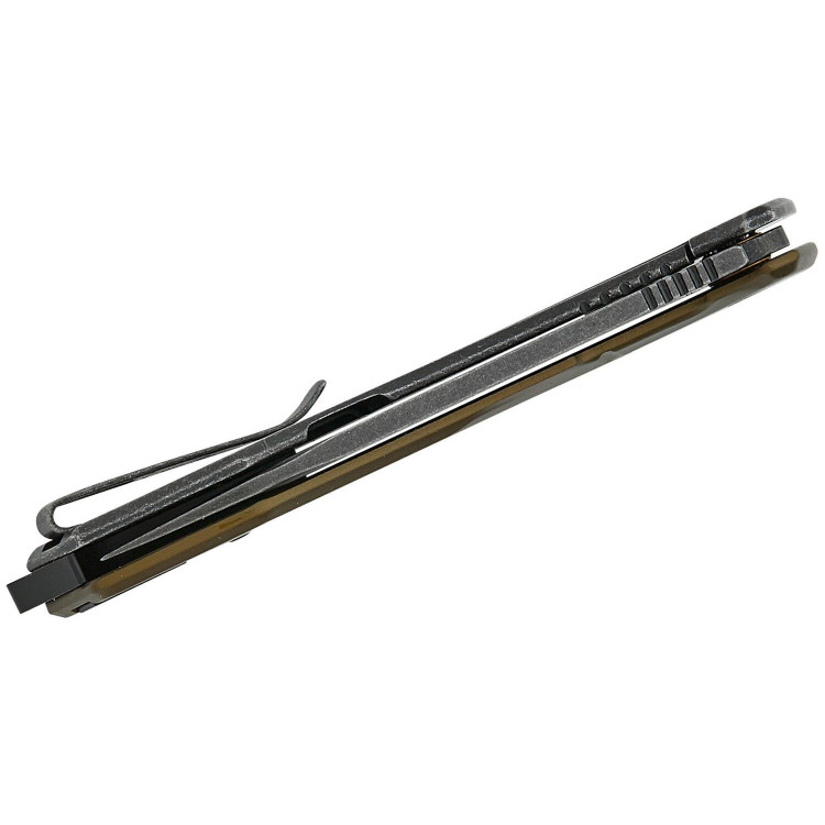 Руків’я виконана з алюмінію з ергономічною формою та текстурованою поверхнею для надійного утримання у будь-яких умовах. Ніж оснащений зручним механізмом відкривання за допомогою фліппера та надійним фреймлоком для безпечного використання.