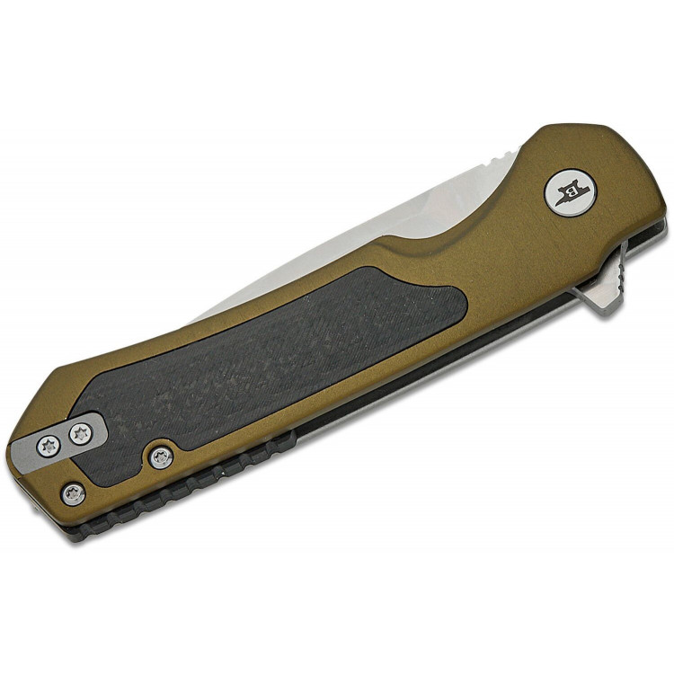 Руків’я виконана з міцного текстурованого матеріалу G10, який забезпечує зручний і впевнений хват у будь-яких умовах. Ніж оснащений зручним механізмом відкривання за допомогою фліппера та надійним лайнерлоком для безпечного використання.
