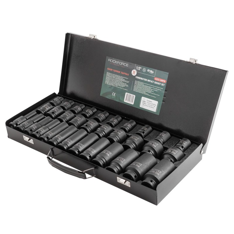 Набір головок ударних глибоких 16пр., 1/2 "6гр. (10,12-19,21,22,24,27,30,32,36мм), в металевому кейс