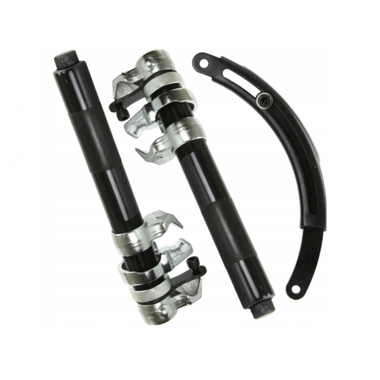 Съемник пружин REWOLT T1725 – специальный инструмент для замены амортизаторов на подвесках McPherson. Разработан с учетом особенностей подвесок McPherson и оснащен тремя взаимозаменяемыми моноблочными вилками.