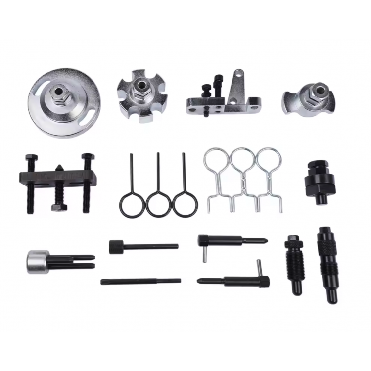 Профессиональный набор инструментов REWOLT предназначен для установки и регулирования фаз газораспределения дизельных двигателей группы VAG. Комплект используется для фиксации распределительных валов, коленчатого вала и натяжителя при замене цепи ГРМ или ремонте двигателя.