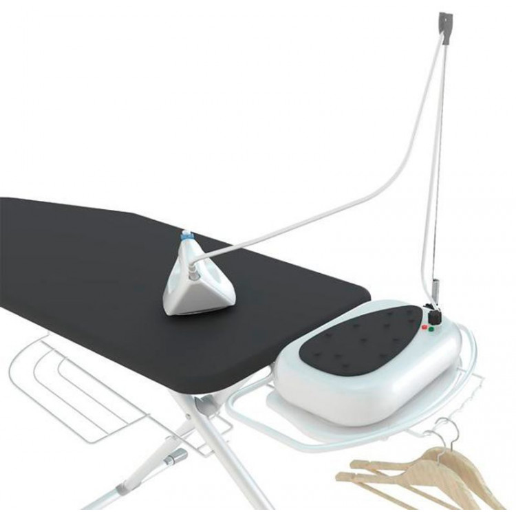 Особливості Підставка для праски , Підставка для парогенератора , Регулювання по висоті , Полиця для білизни , Основа з металевою сіткою , Тримач проводу, Підрукавник у комплекті