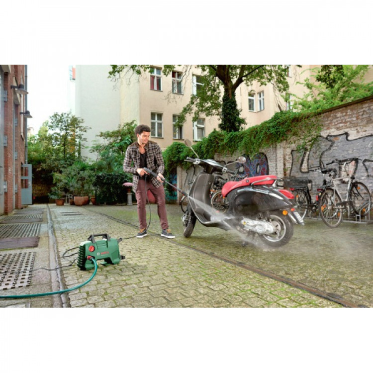 - Мийка високого тиску (110 бар) Bosch EasyAquatak 110 потужністю 1,3 кВт для високоякісної очистки терас, балконів, садових доріжок, меблів та інструментів, мийки автомобілів, велосипедів та ін.