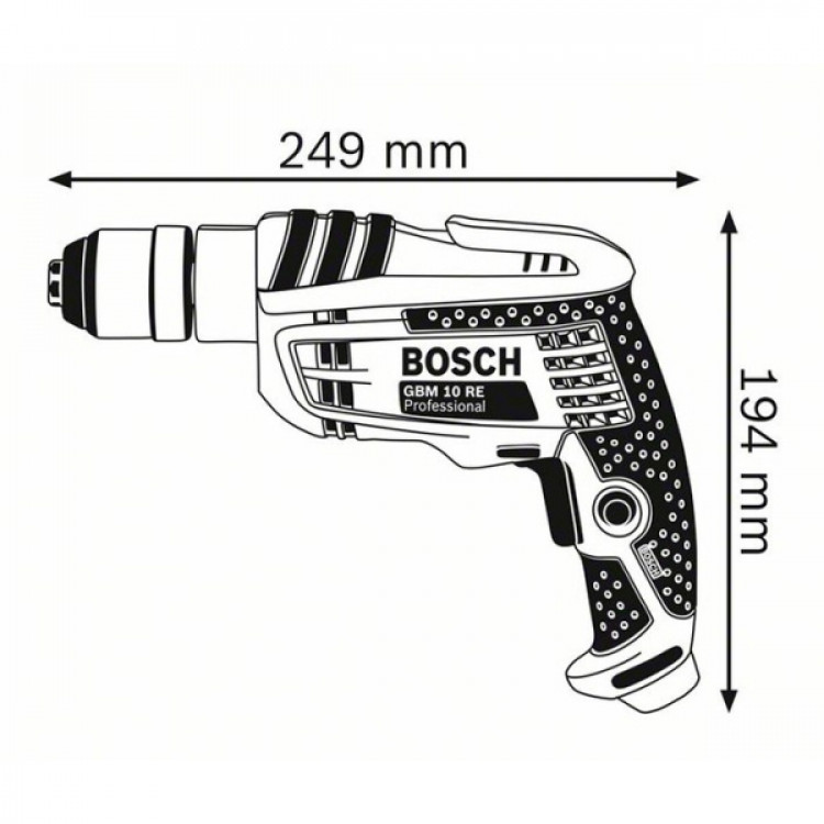 Дриль Bosch GBM 10 RE потужністю 600 Вт із швидкозатискним патроном 1-10 мм