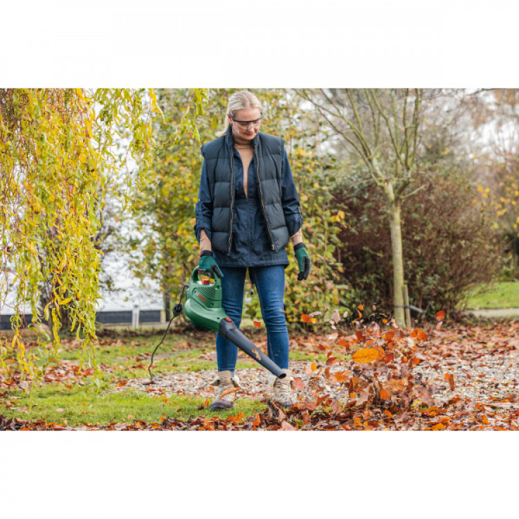 Bosch UniversalGardenTidy 3000 — електрична повітродувка-пилосос потужністю 1600-3000 Вт з функцією мульчування (12:1) допоможе швидко та легко зібрати все садове сміття. Регульована швидкість повітряного потоку 165-285 км/год. Зручне перемикання між режимами роботи, без застосування інструментів. Максимальний обсяг повітряного потоку 160 л/с. Водовідштовхувальні брудовідбівачі на мішку (50 л) забезпечують відведення води та нерослинного сміття на землю. Важить повітродувка 3,4 кг, садовий пилосос — 4,7 кг.