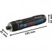 - Нова Bosch Go оснащена вбудованим літій-іонним акумулятором на 3.6В зі збільшеною ємністю 2 Ah. Літій-іонні акумулятори не страждають від ефекту пам'яті і можуть бути заряджені в будь-який час. Вони зберігають заряд під час бездіяльності, а вбудована система Electronic Cell Protection захищає від глибокого розряду і перевантажень.