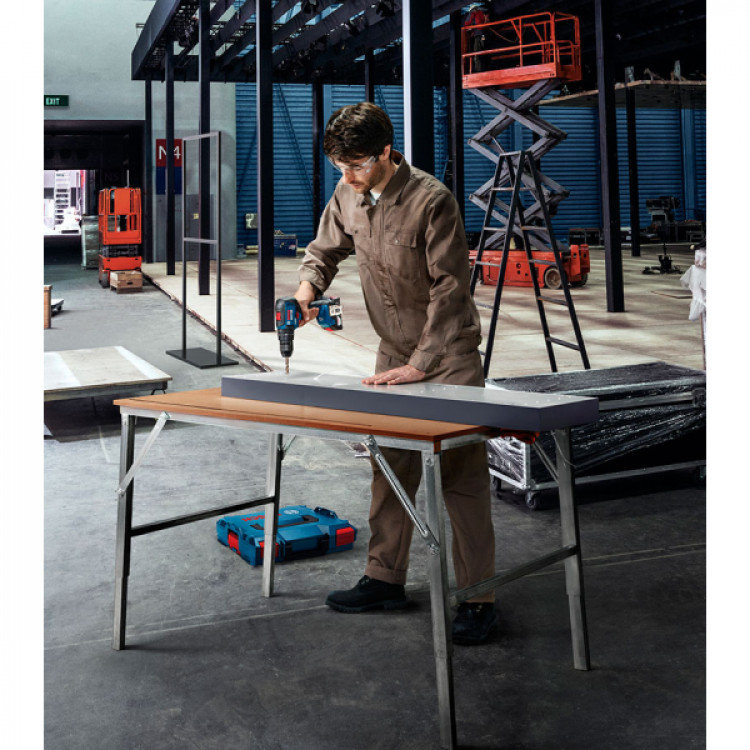 Дриль-шуруповерт Bosch GSB 18V-50 відрізняється компактністю і ефективністю. Працює від літій-іонного акумулятора 18 В 2,0 АН. Встановлено безщітковий мотор. Ударний механізм видає до 27 тис уд / хв. Двошвидкісний: перша швидкість 0-460, друга 0-1800 об / хв. Обертальний момент 28/50 Нм, є 20 рівнів настройки. Може працювати як дриль, ударний дриль і шуроповерт. З ударом виробляє перфорації в цеглі і металі 1,3 см, в деревині без удару 3,5 см. Підходить для роботи з алюмінієм, керамікою, пластиком і іншими штучними матеріалами. Закручує/відгвинчує шурупи до 1 см. Швидкозатискний суцільнометалевий патрон 1,5-13 мм. Є підсвічування робочої зони і індикація. У комплектацію входять: 2 акумулятори GBA 18V 2,0 Ан, зарядний пристрій GAL 18V-20, кейс L-Case.