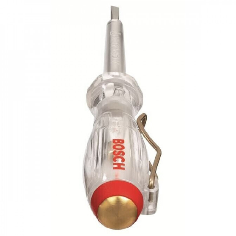 - Доповненням до набору слугує однополюсний тестер фаз, сертифікований за DIN VDE 0680-6. Він дає змогу швидко і безпечно визначити наявність змінної напруги в діапазоні від 100 до 250В. Індикатор оснащений тліючим світловим елементом і зручною кліпсою для носіння в кишені.