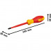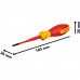 Міцність на розрив звичайного сталевого дроту: 1600 Н/мм² | Випробувано до: 10000В | Сертифіковано VDE до 1000В відповідно до DIN EN/IEC 60900 | Ізольовані термопластичним еластомером (TPE) | Ергономічна м'яка рукоятка з ефектом антиковзання | Корозійна стійкість | Використання однією рукою | Загартовані ріжучі кромки | Інформація про розмір викрутки розташована на ручці | Конструкція викруток із захистом від скочування
