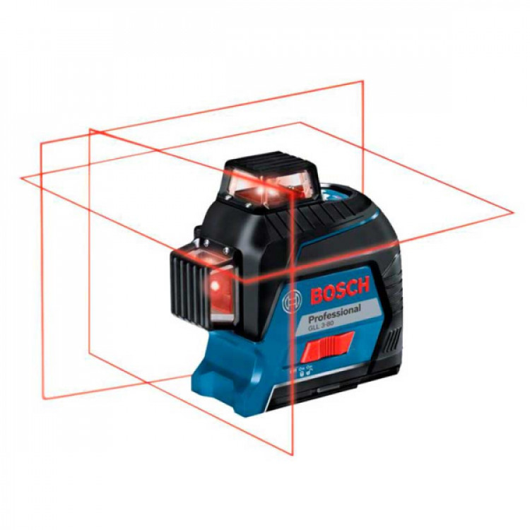 Лазерний нівелір Bosch GLL 3-80 швидко вирівняє горизонтальні та вертикальні лінії на відстані до 30 м усередині приміщень. Проектує дві вертикальні та горизонтальну лінії на 360 градусів. З приймачем охоплення площини збільшується до 120 м. Самонівелювання ±4° за 4 секунди з достовірністю ±0,2 мм/м. Доставляється у валізі з батарейками, лазерною мішенню, чохлом.