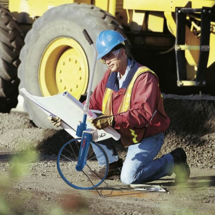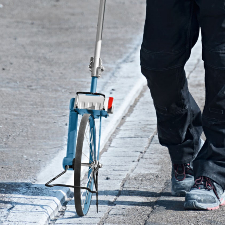 Курвіметр Bosch Professional GWM 40 — це вимірювальний інструмент професійного класу для точного визначення відстаней до 9999.99 м на будмайданчиках, при дорожніх і ландшафтних роботах. Колесо діаметром 38.91 см з окружністю 1.22 м. Він оснащений 6-розрядним лічильником і зручною функцією скидання. У комплекті йде захисна сумка.
