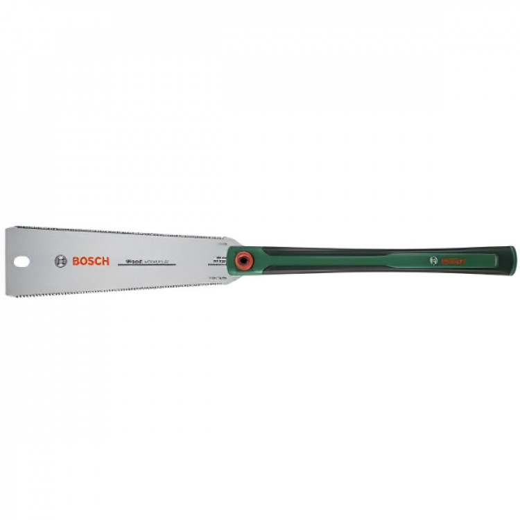 Пила Bosch Ryoba 250 мм виконує точні пропили в дереві та пластику. За поздовжні пропили відповідають великі зубці 7-10 TPI, за поперечні та діагональні - дрібні зубці 17 TPI. Двосторонній інструмент, що тягне, експлуатується з мінімальними витратами зусиль.
