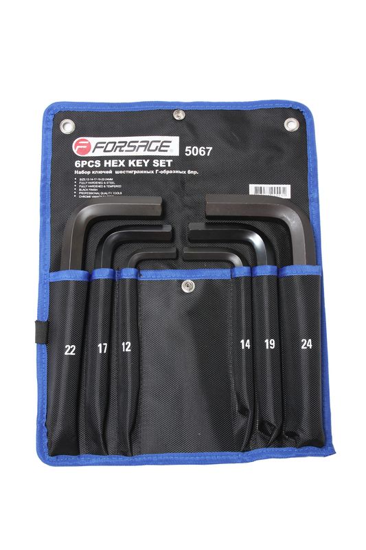 Набір ключів Г-подібних 6-гранних, 6пр. (12, 14, 17, 19, 22, 24ММ) на полотні