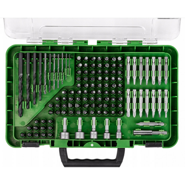 Набір свердел по металу та біт на 120 предметів від бренду Rockforce RF-10120 призначений для свердління отворів у різних матеріалах та роботи з гвинтами і шурупами. Він включає свердла різних розмірів, біти та насадки для шуруповерта, забезпечуючи універсальність застосування. Свердла виготовлені з високоякісної швидкорізальної сталі (HSS), що забезпечує міцність, високу швидкість свердління та довговічність. Усі елементи упаковані в зручний кейс для зберігання та транспортування. Комплектація набору: Свердла по металу — 11 шт.: 1.5, 2, 2.5, 3, 3.2, 3.5, 4, 5, 6, 6.5, 8 мм Насадки для шуруповерта — 5 шт.: 7, 8, 10, 12, 13 мм Магнітний тримач — 1 шт. Біти 25 мм — 88 шт.: SL 3×3, 4×3, 5×4, 6×4, 7×1 мм; PH 0×3, 1×3, 2×6, 3×4 мм; SQ 0×3, 1×8, 2×6, 3×6 мм; TORX 8, 10, 15, 20, 25, 27, 30, 40 мм; HEX 2, 2.5, 3, 4, 5, 6 мм; HEX 5/64", 3/32", 1/8", 5/32", 3/16", 1/4" Біти 50 мм — 15 шт.: PH1, PH2, PH3, PZ1, PZ2, PZ3, SL 4, 5, 6, SQ 0, 1, 2 Набір підходить як для домашнього використання, так і для професійної роботи, забезпечуючи якість, довговічність та зручність. Це надійний інструмент та відмінний подарунок для чоловіка, брата, сина або друга.