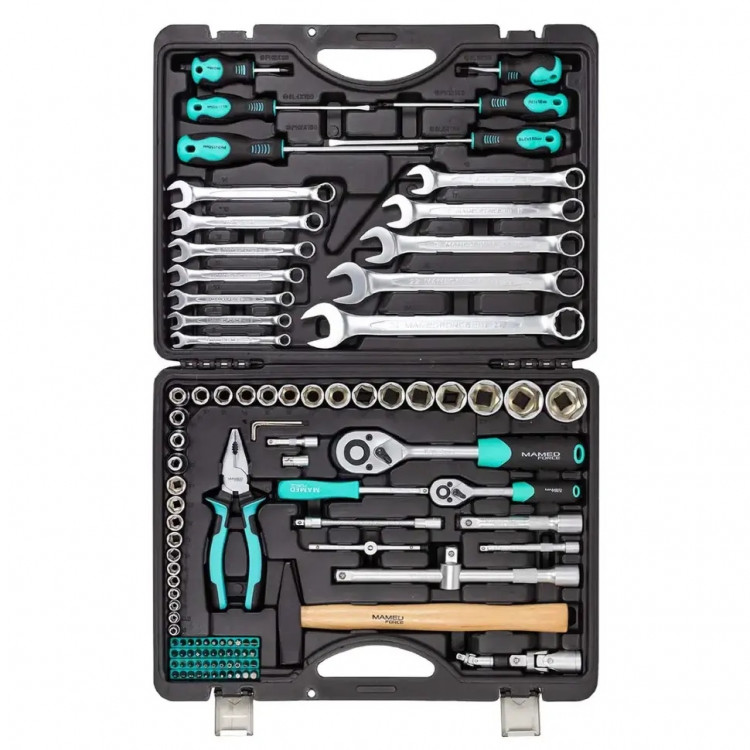 Набор автомобильных инструментов MAMEDFORCE 110 предметов MF-41101-5— универсальное решение для автолюбителей и профессионалов. С двумя посадочными квадратами 1/4" и 1/2", этот комплект позволяет выполнять большинство ремонтных работ, включая замену свечей зажигания, ремонт тормозов, обслуживание двигателя и другие механические операции. Основные характеристики: • Количество предметов: 110 • Посадочные квадраты: 1/4" и 1/2" • Применение: ремонт и обслуживание автомобилей, замена масла, свечей, тормозных систем и работа с двигателем Преимущества набора: Комплексность: включает все необходимые инструменты для различных задач, что делает его универсальным помощником в гараже или мастерской. Прочный кейс: надежный кейс из ABS-пластика обеспечивает хранение и защиту инструментов, предотвращая их повреждение. Удобство переноски: кейс оснащен удобной ручкой и надежными клипсами-защелками, которые предотвращают случайное открытие. Комплектация: Посадочный квадрат 1/4" Головки короткие (11 шт.): 5, 5.5, 6, 7, 8, 9, 10, 11, 12, 13, 14 мм Удлинители: L-50, L-100 мм Трещотка (1 шт.) Битодержатель 1/4 (F) х 1/4 (F) Вороток Т-образный 115 мм Кардан шарнирный Рукоятка для бит Вороток шарнирный Биты (44 шт.): PH (0, 1, 2, 3 мм), PZ (0, 1, 2, 3 мм), SL (4, 5.5, 6, 7 мм), SLT (4, 6, 8, 10), Hex (2, 2.5, 3, 4, 5, 6, 7 мм), Torx (T8–T40), Tamper Torx (TT8–TT40), S (1, 2, 3) Посадочный квадрат 1/2" Головки короткие: 8–32 мм (включая 8, 9, 10, 11, 12, 13, 14, 15, 16, 17, 18, 19, 21, 22, 24, 27, 30, 32 мм) Трещотка (1 шт.) Удлинители: L-125 мм, L-250 мм Кардан шарнирный Адаптер-переходник 3/8 (F) х 1/2 (M) Ключи комбинированные (12 шт.): 8, 9, 10, 11, 12, 13, 14, 15, 17, 19, 22, 24 мм Молоток 300 г Плоскогубцы комбинированные 180 мм Отвертки (6 шт.): PH2x38, PH1x100, PH2x150; SL6x38, SL4x100, SL5x150 Ключи шестигранные Г-образные (3 шт.): 1.5, 2, 2.5 мм Кейс