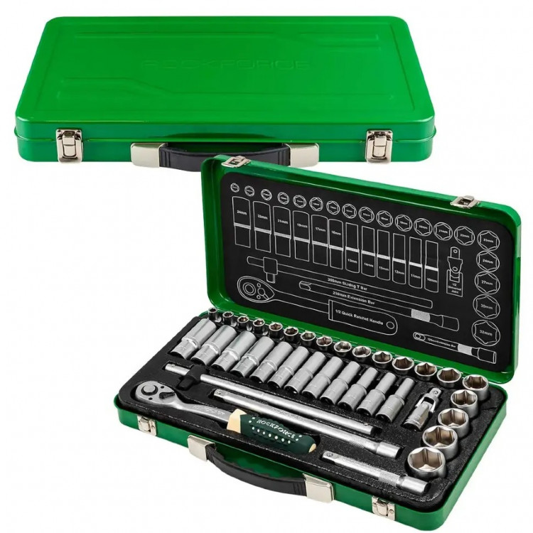 Набір інструментів Rockforce RF-4362M — професійний комплект для автолюбителів та майстрів, яким потрібні надійні інструменти для ремонту автомобілів, мотоциклів та іншої техніки. Усі елементи виготовлені з міцної хромованадієвої сталі (Cr-V), що гарантує високу стійкість до зношування та довговічність навіть при інтенсивній експлуатації. Особливості: • Широка комплектація — у наборі 19 торцевих та 12 глибоких головок, що робить його універсальним для різних завдань: від заміни свічок запалювання до роботи з кріпленнями у важкодоступних місцях. • Зручність роботи — Т-подібний вороток довжиною 300 мм, карданний шарнір та подовжувачі 125 і 250 мм дозволяють легко дістатися до вузьких ділянок. • Надійне зберігання — усі інструменти розміщені у міцному металевому кейсі, що зручно для транспортування. Комплектація: ✔ Головки торцеві 1/2" 6-гранні (38 мм): 8, 10, 11, 12, 13, 14, 15, 16, 17, 18, 19, 20, 21, 22, 23, 24, 27, 30, 32 мм ✔ Головки торцеві глибокі 1/2" 6-гранні (77 мм): 10, 11, 12, 13, 14, 15, 16, 17, 19, 21, 22, 24 мм ✔ Тріскачка реверсивна ✔ Вороток Т-подібний 300 мм ✔ Подовжувачі: 125 мм і 250 мм ✔ Карданний шарнір ✔ Металевий кейс Застосування: Набір стане надійним помічником для автосервісу, гаража та домашнього використання. Ідеально підходить для технічного обслуговування авто, заміни свічок запалювання, роботи з кріпленнями та виконання дрібних ремонтних робіт.