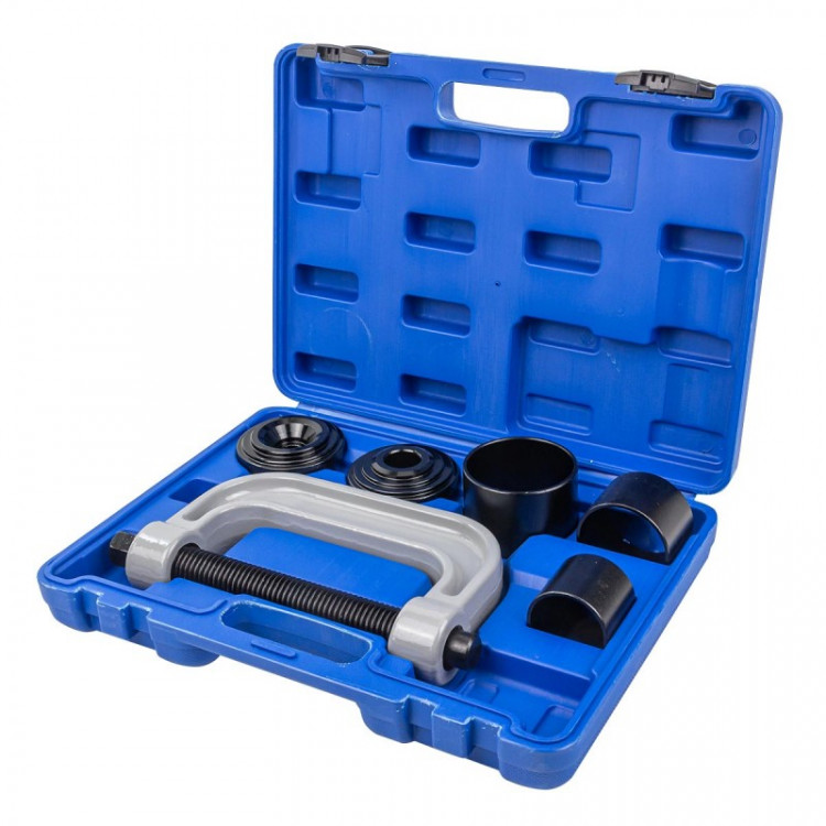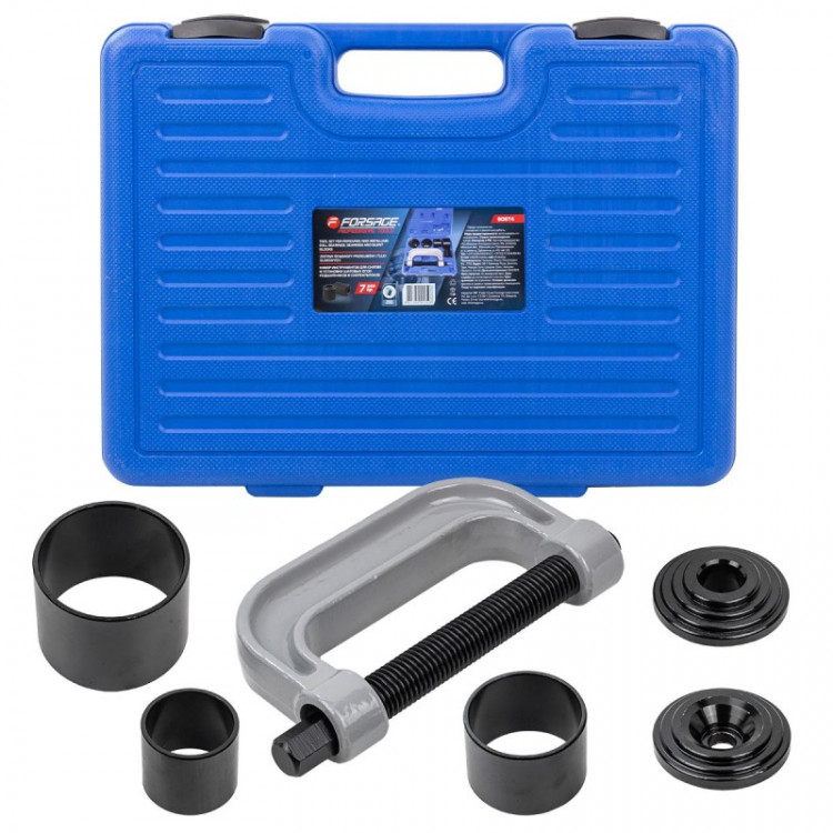 Набір інструментів для зняття та встановлення шарових опор, підшипників і сайлентблоків, 6 предметів FORSAGE F-906T4 Цей набір інструментів стане незамінним помічником для демонтажу та монтажу пресованих деталей, таких як кульові опори, універсальні шарніри та штифти кріплення гальмівних колодок на вантажних автомобілях. Особливості:Широке застосування: Підходить для роботи з різними пресованими деталями, включаючи кульові опори, універсальні шарніри, штифти кріплення гальмівних колодок на вантажних автомобілях та інші.Ефективність: Дозволяє легко та швидко знімати та встановлювати пресовані деталі, навіть якщо вони іржаві або корозійні.Міцність та надійність: Виготовлений з високоякісних матеріалів, що гарантує стійкість до зношення та довговічність інструменту.Комплектація:Адаптер для монтажуАдаптер для демонтажуC-подібний прес з гвинтовим штоком 275 ммПриймальна труба 70 мм внутрішній діаметр, 76 мм зовнішній діаметрПриймальна труба 57 мм внутрішній діаметр, 63 мм зовнішній діаметрПриймальна труба 44 мм внутрішній діаметр, 50 мм зовнішній діаметр З цим набором інструментів ви зможете без проблем впоратися з будь-якими завданнями, пов'язаними зі зняттям та встановленням пресованих деталей!