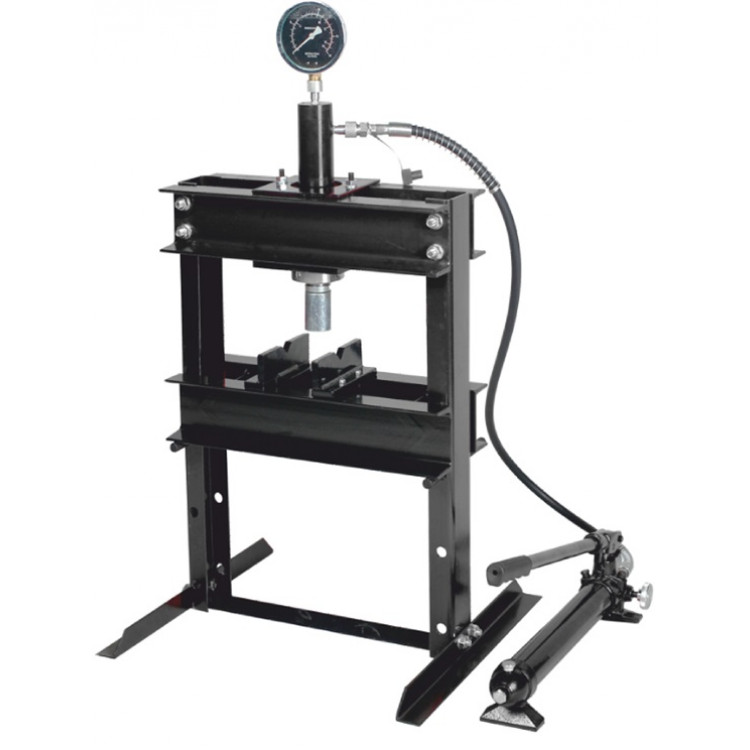 ROCKFORCE RF12001: Настільний гідравлічний прес 12т з виносним насосом - міць і точність для вашої майстерні! Пропонуємо вашій увазі настільний гідравлічний прес ROCKFORCE RF12001, створений для виконання широкого спектру завдань, де потрібна висока точність та потужність. Цей прес стане вашим незамінним помічником в майстерні, гаражі або на виробництві. Переваги та особливості: Міцна та надійна конструкція: Виготовлений з потовщеної H-подібної високоякісної сталі, що забезпечує безпечне використання при пресуванні, згинанні та правці. Стійкість та точність: Центральна штампувальна пластина оснащена V-подібним блоком та направляючою рейкою 180 градусів, що забезпечує стабільність обробки та точність виконуваних операцій. Захист від зовнішніх впливів: Зовнішнє покриття преса оброблено безсвинцевою порошковою фарбою, яка відрізняється міцністю, стійкістю до масел, мастил, бруду та легкістю очищення. Довговічність та ефективність: Високоточне шліфування поршневого штока та комплектуючих забезпечує довгий термін служби та високу ефективність роботи. Регулювання робочого простору: Поверхня робочого столу піднімається вручну, що дозволяє отримати оптимальну робочу відстань. Потужність та діапазон: Оснащений 12-тонним гідравлічним приводом з робочим діапазоном від 0 до 34 см. Безпека: Високоякісна прецизійна пружина забезпечує повільний та безпечний відскок після пресування. Зручність використання: Виносний насос забезпечує зручність та простоту в роботі з пресом. Характеристики: Зусилля: 12 тонн. Робоча висота: 0-340 мм. Робоча ширина: 400 мм. Розміри робочого столу: 185х400 мм. Хід штока: 135 мм. Область застосування: Настільний гідравлічний прес ROCKFORCE RF12001 ідеально підходить для: Пресування деталей. Згинання металу. Правки деталей. Виконання інших робіт, де потрібна висока точність та потужність. ROCKFORCE RF12001 - це надійний та потужний інструмент, який стане вашим незамінним помічником в майстерні!