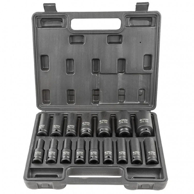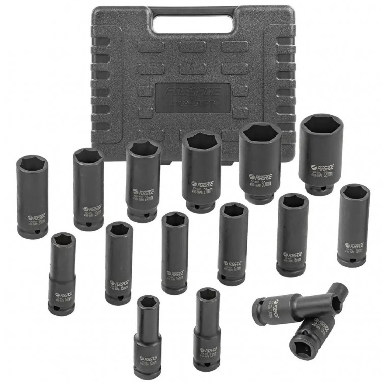 Набір Forsage F-4169-5MPB із 16 торцевих 6-гранних ударних глибоких головок з посадковим квадратом 1/2" — ідеальний вибір для автолюбителів та професіоналів! Високоякісні матеріали: Ударні головки виготовлені з міцної хромомолібденової сталі (CR-Mo), що забезпечує їхню довговічність та здатність витримувати високі навантаження. Глибокий профіль: Головки мають глибокий профіль, що дозволяє легко досягати гайок та болтів у важкодоступних місцях, таких як заглиблення та вузькі отвори. Сумісність: Завдяки посадці квадрата 1/2", головки сумісні з різними ручними та електроінструментами, що забезпечує універсальність у використанні. Різноманітність розмірів: Набір включає 16 головок різних розмірів: 10, 11, 12, 13, 14, 15, 16, 17, 18, 19, 21, 22, 24, 27, 30, 32 мм — легко підібрати потрібний інструмент для будь-яких задач. Зручне зберігання: Головки поставляються у міцному пластиковому кейсі, який забезпечує надійний захист та зручність транспортування.