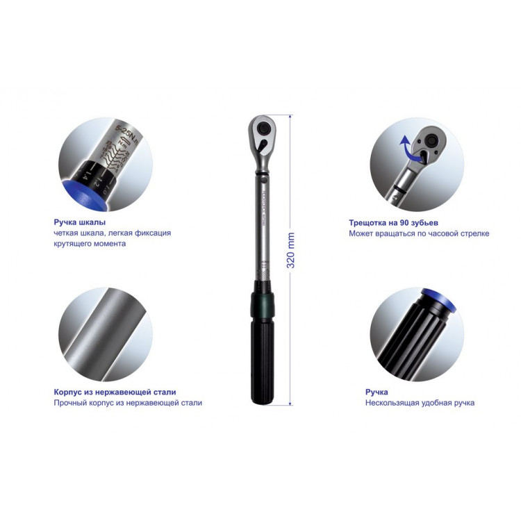 Динамометричний ключ ROCKFORCE RF-6473380 з посадковим квадратом 3/8", зі сталі CrV, використовується для закручування різьбового кріплення з точно заданим зусиллям в діапазоні від 10 до 60 Нм. Оснащений індикатором налаштування крутного моменту, має підвищену точність, погріш %.Момент сили контролюється клацанням, що полегшує роботу в умовах відсутності візуального контролю. Переваги Стійкість до підвищених навантажень - ключ виготовлений з хромованадієвої сталі, посадковий квадрат - з хромомолібденової сталі.Довговічність – поверхня інструменту хромована для надійного захисту від корозії.Зручна робота в обмеженому просторі - тріскачковий механізм полегшує затягування кріплення.Проста установка та заміна насадки – механізм швидкого скидання дозволяє моментально знімати торцеву головку, що заощаджує час майстра.Надійна фіксація насадки - металева кулька-тримач міцно утримує торцеву головку, адаптер, подовжувач і т.д.Зручне транспортування та зберігання – інструмент поставляється у пластиковому кейсі.