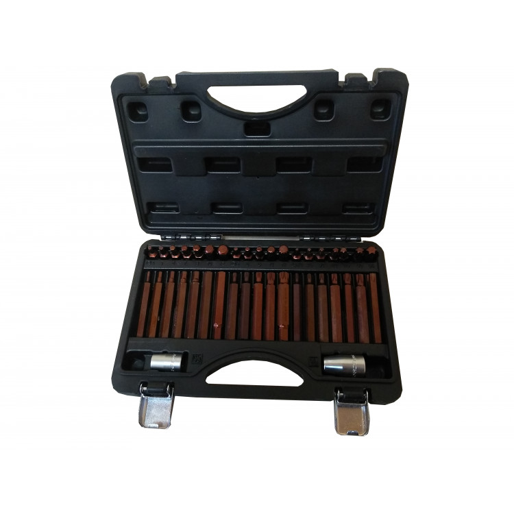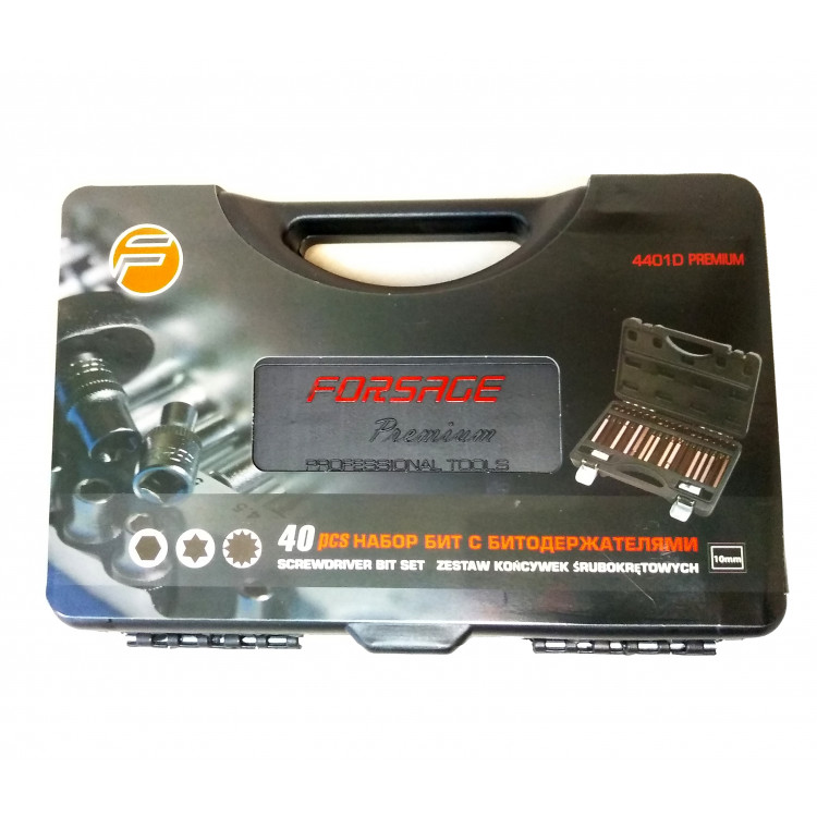 Набір біт з битодержателями "Premium", 40 пр. (10мм) (75/30мм: T20-T55, H4-H12, M5-M12) у пластиковому кейсі Зміст: Біти HEX 4-5-6-7-8-10-12мм (30мм)Біти HEX 4-5-6-7-8-10-12мм (75мм)Біти TORX Т20-Т25-Т30-Т40-Т45-Т50-Т55 (30мм)Біти TORX Т20-Т25-Т30-Т40-Т45-Т50-Т55 (75мм)Біти SPLINE M5-M6-M8-M10-M12 (30мм)Біти SPLINE M5-M6-M8-M10-M12 (75мм)Тримач біт 3/8" x 10 ммТримач біт 1/2" x 10 мм