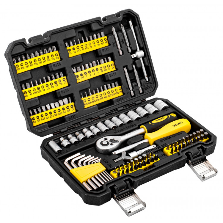 Набір інструментів 130 предметів. 1/4'' WMC TOOLS 20130: Комплектація: Посадковий квадрат 1/4" Головки:4, 4.5, 5, 5.5, 6, 7, 8, 9, 10, 11, 12, 13, 14 ммБітоутримувачВороток T-подібний Тріскачка реверсивна Подовжувач 2" Y-біта для гаків Рукоятка 6" Набір ключів Г-подібних HEX:1.5, 2, 2.5, 3, 4, 5, 5.5 мм Біти 50 мм:SL: 4, 6 ммPH: 1, 2 Біти:PH: 0 (2 шт.), 1 (2 шт.), 2 (4 шт.), 3 (2 шт.)PZ: 0 (2 шт.), 1 (2 шт.), 2 (4 шт.), 3 (2 шт.)TORX: T8, T10, T15, T20, T25, T27, T30, T35, T40, T45HEX з отвором дюйм.: 1/16", 5/64", 3/32", 7/64", 1/8", 9/64", 5/32", 3/16", 7/32" , 1/4"HEX з отвором: 1.5, 2, 2.5, 3, 4, 5, 5.5, 6 ммSL: 3, 4, 4.5, 5, 5.5, 6, 6.5, 7, 8 ммC: C1, C2, C3... (40 шт.) Біти:M: 5, 6, 8S: 0, 1, 2, 3TRI-WING: 1, 2, 3, 4TORQ: 6, 8, 10SPANNER: 4, 6, 8, 10HEX: 1.5, 2, 2.5, 3, 4, 5, 5.5, 6 ммHEX з отвором: 2, 2.5, 3, 4, 5, 6 мм, 5/64", 3/32"TORX з отвором: T8H, T10H, T15H, T20H, T25H, T27H Призначення: Цей набір інструментів 130 предметів з посадковим квадратом 1/4" від WMC TOOLS призначений для широкого спектру робіт, таких як: Ремонт та обслуговування автомобілів: закручування та відкручування болтів, гайок, гвинтів, саморізів та інших кріпильних елементів.Меблеві роботи: збирання та розбирання меблів, кріплення фурнітури.Ремонт побутової техніки: розбирання та складання побутових приладів, заміна деталей.Електромонтажні роботи: монтаж та демонтаж електротехнічних елементів, підключення проводів.Інші роботи: столярні роботи, сантехнічні роботи, слюсарні роботи. Переваги: Універсальність: широкий набір інструментів дозволяє виконувати різноманітні завдання.Компактність: набір інструментів упакований у кейс, що забезпечує зручне зберігання та транспортування.Міцність: інструменти виготовлені з високоякісних матеріалів, що забезпечує їхню довговічність.Функціональність: набір інструментів включає всі необхідні інструменти для виконання більшості