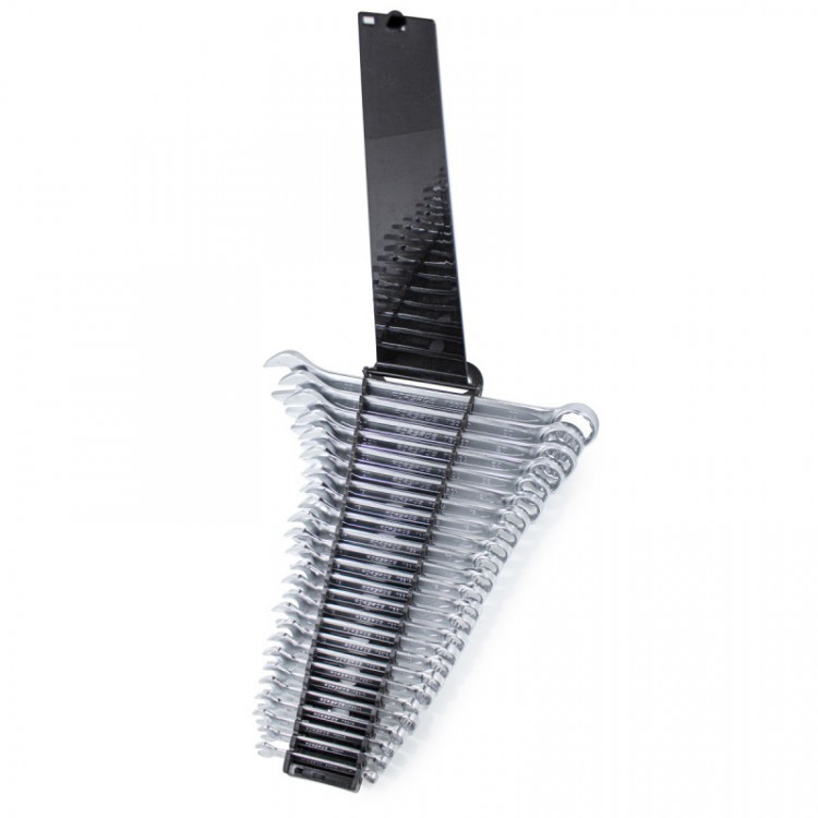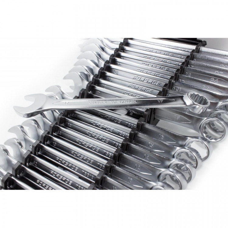 Представляємо набір комбінованих ключів Forsage F-5261MP — комплексний комплект із 25 ключів, виготовлених з високоякісної CrV-сталі та покритих «матовим хромом». Цей набір, що охоплює розміри від 6 до 32 мм, стане незамінним помічником для швидкого монтажу та демонтажу кріпильних елементів під час ремонтних робіт вдома або в гаражі. Кільцевий зів з кутом нахилу 15 градусів щодо площини інструменту забезпечує зручність роботи у різних умовах. Переваги: Висока міцність та опірність деформації: Ключі виготовлені з хромованадієвої сталі (CrV), що забезпечує їм необхідні характеристики міцності та високу стійкість до деформацій. Довговічність робочих частин: Робочі частини інструментів пройшли загартування до твердості 48 HRC, що значно подовжує їхній термін служби. Захист від корозії: Матове хромонікелеве покриття надійно захищає ключі від утворення іржі, забезпечуючи збереження їхнього зовнішнього вигляду та функціональності. Надійне захоплення кріплень: Накидні частини з 12-гранним профілем дозволяють охопити кріплення по всій поверхні, за рахунок чого знижується ризик деформації його граней. Зручне зберігання та транспортування: Ключі зручно зберігати та вони не загубляться під час транспортування, оскільки поставляються у пластиковому тримачі. Повна комплектація: Набір дозволяє вирішити більшість завдань із монтажу, оскільки складається з 25 ключів основних типорозмірів. Оптимальний кут нахилу: Кільцевий зів з кутом нахилу 15 градусів забезпечує зручність роботи, зокрема у важкодоступних місцях. Комплектація (розміри, мм): 6, 7, 8, 9, 10 (2 шт.), 11, 12 (2 шт.), 13 (2 шт.), 14 (2 шт.), 15, 16, 17 (2 шт.), 18, 19, 21, 22, 24, 27, 30, 32.