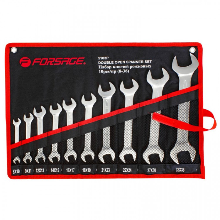 Набір ключів комбінованих Forsage F-5103PНабірРозміри:- 8x10 мм- 9x11 мм- 12x13 мм- 14x15 мм- 16x17 мм- 18x19 мм- 21х23 мм- 22х24 мм- 27х30 мм- 32х36 мм- ПолотноОсобливості- Тип: ріжкові- Зручне полотно