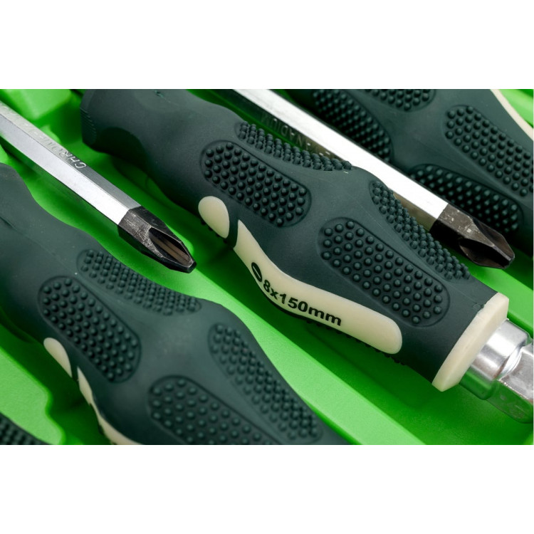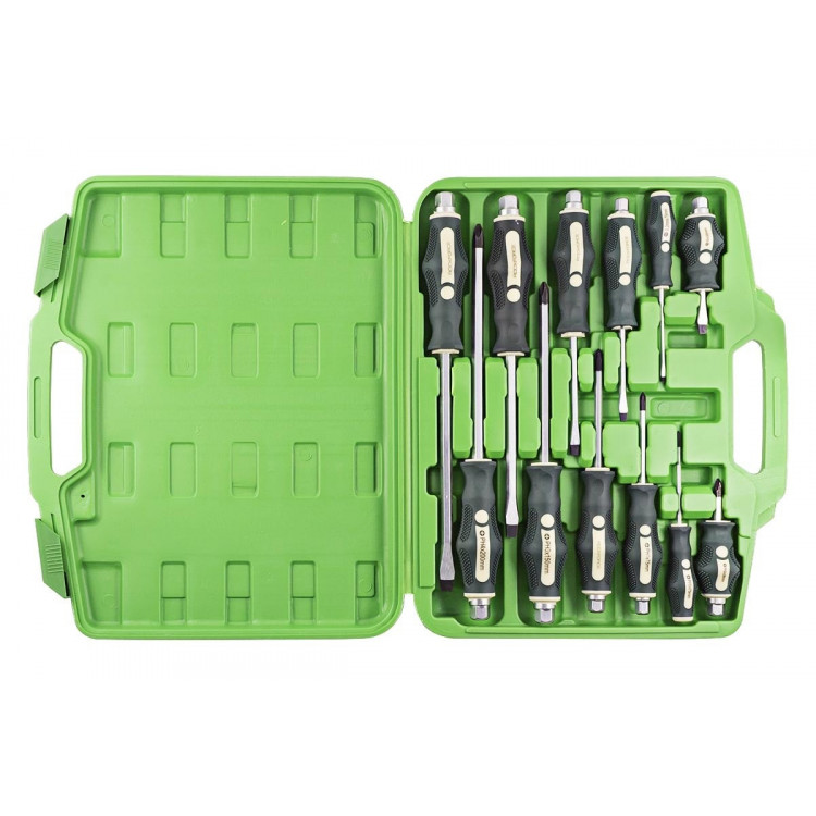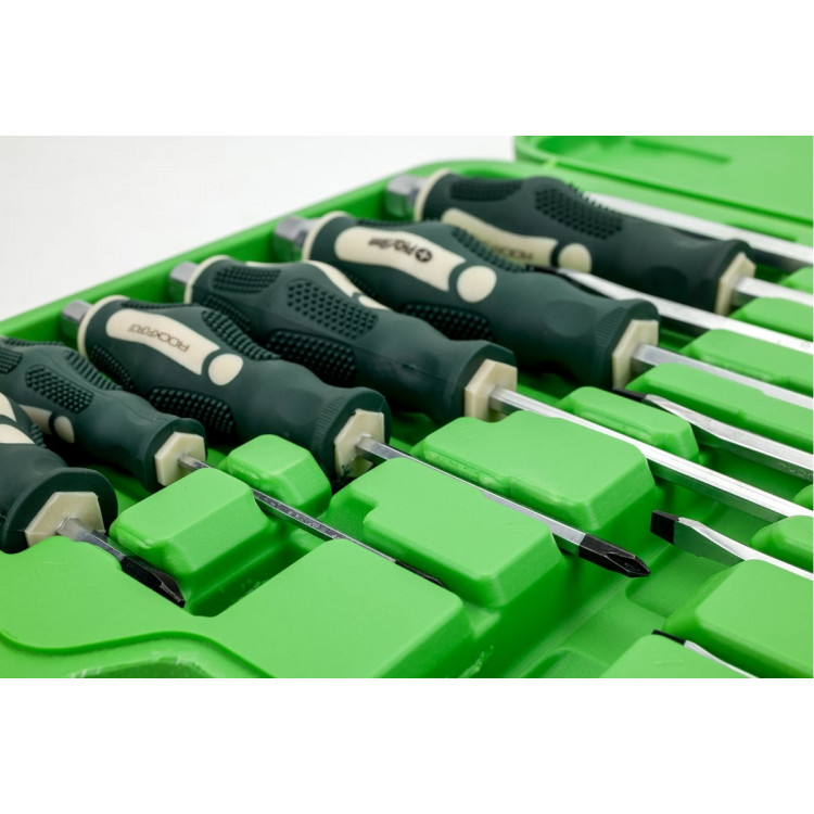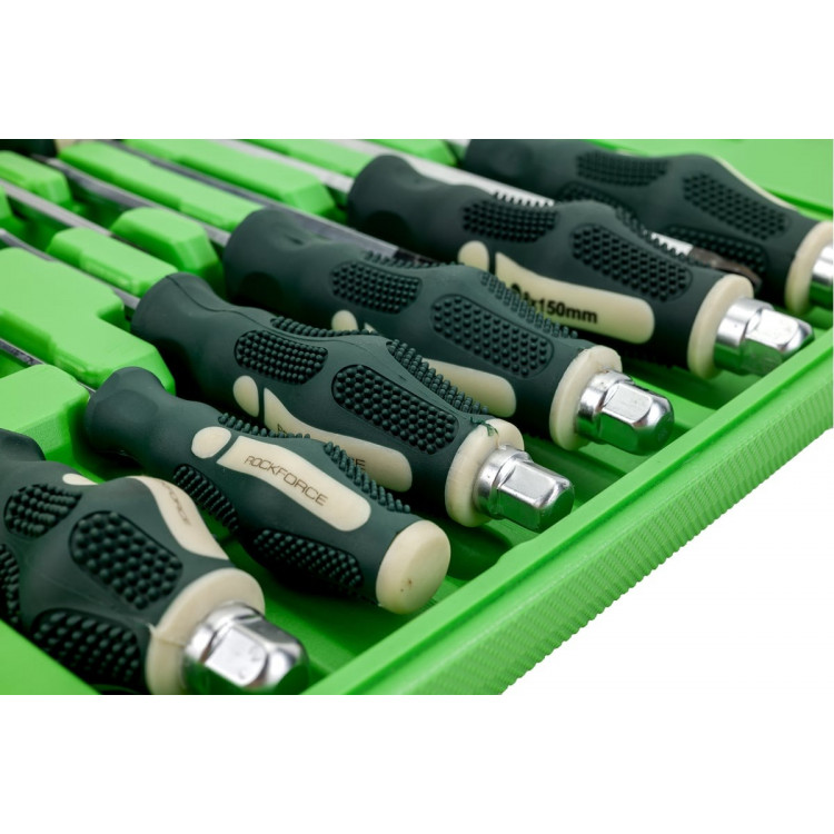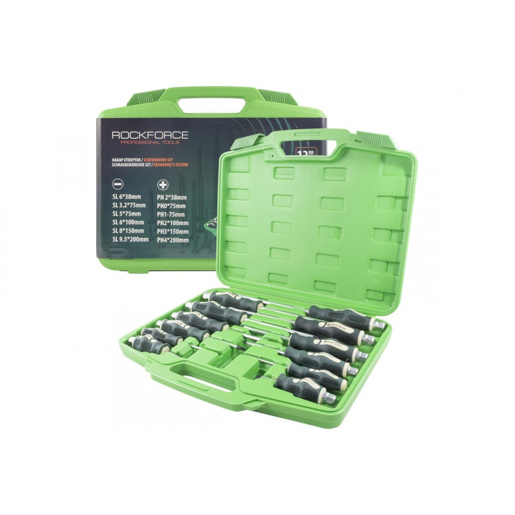 Набір викруток магнітних, силових ROCKFORCE RF-21310, що спрощують монтаж та демонтаж. Зручні профільовані викрутки, які суттєво спрощують процес роботи з гвинтами.Сфера застосування включає в себе майстерні та сервіси. Допустимо також використання і в побутових умовах.Набір- Викрутка шліцьова SL6.5x38 мм- Викрутка шліцьова SL3x75 мм- Викрутка шліцьова SL5.5x75 мм- Викрутка шліцьова SL6.5x100 мм- Викрутка шліцьова SL8.0x150 мм- Викрутка шліцьова SL10.0x200 мм- Викрутка хрестова PH2x38 мм- Викрутка хрестова PH0x75 мм- Викрутка хрестова PH1x75 мм- Викрутка хрестова PH2x100 мм- Викрутка хрестова PH3x150 мм- Викрутка хрестова PH4x200 ммОсобливості- Конструкція: силова- Тип накінечника: PH (Phillips), SL (Slotted)- Довжина накінечника: 38, 75, 100, 150, 200 мм- Розмір накінечника: 0, 1, 2, 3, 4, 5.5, 6.5, 8.0, 10.0- Матеріал руків'я: двокомпонентний - Намагнічений накінечник- Форма ручки: пряма- Матеріал стержня: CR-V- Кейс