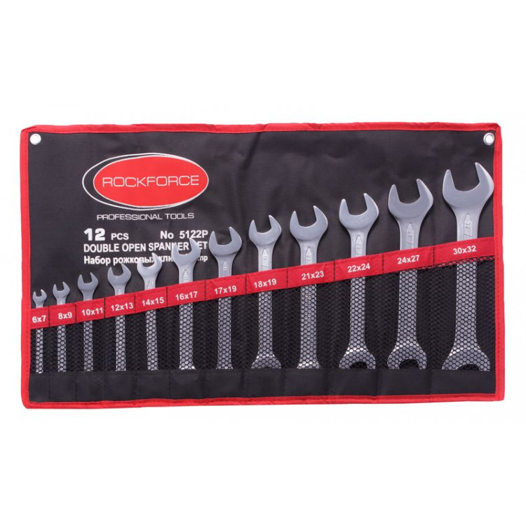 Набор ключей рожковых 12 предметов (6х7, 8х9, 10х11, 12х13, 14х15, 16х17, 17х19, 18х19, 21х23, 22х24, 24х27, 30х32мм) на полотне ROCKFORCE RF-5122P