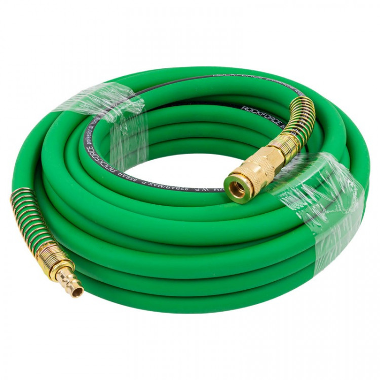 Професійний армований гумовий шланг RF-AHC-52F, призначений для підключення пневматичного обладнання. Довжина в 10 метрів дозволяє працювати на значному віддалені від компресору. Завдяки збільшеній товщині рукав витримує тиск до 18 бар, тому підходить для потужного компресорного обладнання. Використовується в будівництві та на виробничих підприємствах.Особливості- Довжина: 10 м- Розмір, діаметр: 10х16 мм- Тиск: до 18 бар- З фітингами- Робоча температура: від -20 до +60 гр.- Рукав врмований виготовлений із гуми, наділеного легкістю, міцністю та стійкістю до перепадів температур, тому витримує інтенсивне застосування.- Антикорозійне покриття захищає штуцер від іржі, що подовжує термін їх використання.