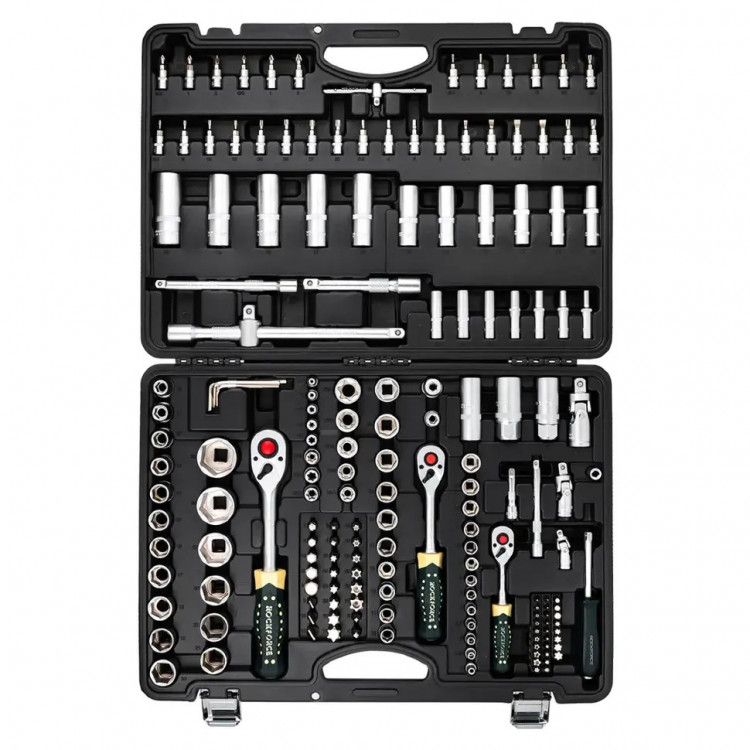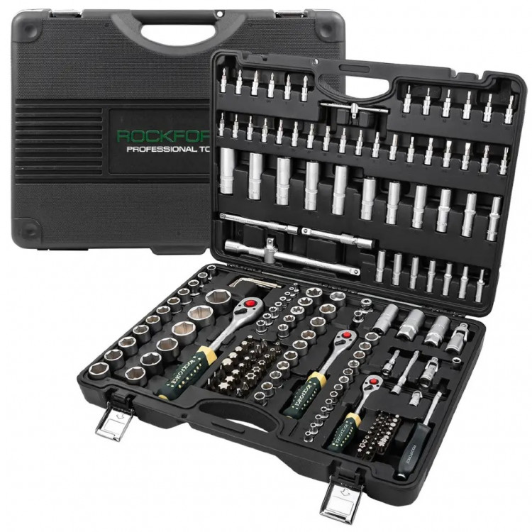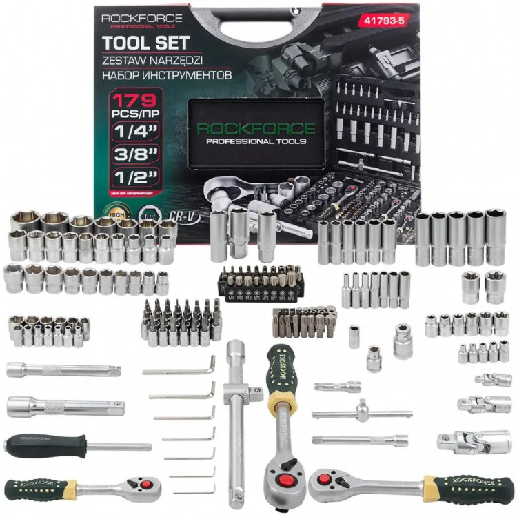 Представляємо професійний набір автомобільного інструменту Rockforce RF-41793-5, який є повноцінним арсеналом зі 179 предметів. Цей набір ідеально підходить для ремонту та обслуговування автомобілів будь-якої марки та моделі, а також для широкого спектру побутових та професійних завдань, де потрібен високоякісний та надійний інструмент.Ключові переваги: Найвища якість матеріалів: Усі компоненти набору, включаючи торцеві головки та біти, виготовлені з високоякісної хромованадієвої інструментальної сталі (Cr-V). Це забезпечує виняткову міцність, твердість та довговічність, гарантуючи довгі роки служби інструменту навіть за інтенсивного використання. Надійне та точне з'єднання: Торцеві головки мають 6-гранне виконання, що забезпечує максимально щільне та точне з'єднання з болтами та гайками. Це мінімізує ризик злизування граней кріплення та самого інструмента, підвищуючи ефективність та безпеку роботи. Зручність використання та зберігання: Кожен предмет у наборі має свій номер та колір, що значно полегшує швидкий пошук потрібного інструмента серед безлічі варіантів. Рукоятки інструментів спроектовані для зручного хвату та максимального комфорту під час роботи, знижуючи стомлюваність. Весь набір постачається у міцному пластиковому кейсі з металевими засувками, що забезпечує надійний захист інструментів від пошкоджень та зручність їх зберігання та транспортування. Широкий спектр застосування (універсальність): Цей великий набір підходить як для використання вдома або в гаражі, так і для професійного застосування в автомайстернях. Він є ідеальним помічником у будь-яких ситуаціях, що вимагають роботи з кріпленням різних розмірів та типів. Повна комплектація: Набір включає інструменти з трьома найбільш затребуваними посадковими квадратами: 1/4", 3/8" та 1/2", що дозволяє працювати з широким діапазоном кріпильних елементів. Склад набору (179 предметів): Посадковий квадрат 1/4": Головки (13 шт.): 4, 4.5, 5, 5.5, 6, 7, 8, 9, 10, 11, 12, 13, 14 мм Головки глибокі (7 шт.): 4, 5, 6, 7, 8, 9, 10 мм Головки Е-профіль (5 шт.): E4, E5, E6, E7, E8 Головки-біти (30 шт.): H (H3-H6), PH (PH0-PH2), PZ (PZ0-P2), SL (SL4-SL7), T (T8-T30), TT (T8H-T30H) Тріскачка реверсивна (1 шт.): L - 150 мм Комірець Т-подібний (1 шт.): L - 110 мм Бітотримач (1 шт.): 1/4"(Sq.F) x 1/4"(Hex.F) Рукоятка для головок (1 шт.): L - 150 мм Подовжувачі (2 шт.): L - 50 мм, L - 100 мм Шарнір карданний (1 шт.) Посадковий квадрат 3/8": Головки (10 шт.): 10, 11, 12, 13, 14, 15, 16, 17, 18, 19 мм Головки глибокі (6 шт.): 10, 11, 12, 13, 14, 15 мм Головки Е-профіль (6 шт.): E10, E11, E12, E14, E16, E18 Тріскачка реверсивна (1 шт.): L - 200 мм Головка свічкова (1 шт.): 18 мм Шарнір карданний (1 шт.) Бітотримач (1 шт.): 3/8"(Sq.F) x 5/16"(Hex.F) Подовжувач (1 шт.): L - 150 мм Посадковий квадрат 1/2": Головки (17 шт.): 10, 11, 12, 13, 14, 15, 16, 17, 18, 19, 20, 21, 22, 24, 27, 30, 32 мм Головки глибокі (5 шт.): 16, 17, 18, 19, 22 мм Головки Е-профіль (2 шт.): E20, E24 Тріскачка реверсивна (1 шт.): L - 250 мм Головки свічкові (2 шт.): 16, 21 мм Шарнір карданний (1 шт.) Бітотримач (1 шт.): 1/2"(Sq.F) x 5/16"(Hex.F) Подовжувач (1 шт.): L - 125 мм Подовжувач з перехідником (1 шт.): L - 250 мм Інші складові: Біти 1/4" x 25 мм (28 шт.): T (T5-T30), TT (T7H), M (M5-M8), TS (TS10-TS45), Ribe (M5-M9) Ключі Г-подібні 6-гранні (7 шт.): 1.27, 1.5, 2, 2.5, 3, 4, 5 мм Біти 5/16" x 30 мм (24 шт.): H (H7-H14), SL (SL8-SL12), PH (PH3-PH4), PZ (PZ3-P4), T (T40-T70), TT (T40H-T70H) Комплект інструментів Rockforce RF-41793-5 — це надійність та якість, які допоможуть вам впоратися з будь-якими завданнями, від базового ремонту до складного обслуговування.