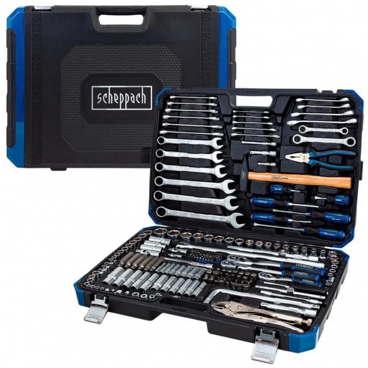 Представляємо вашій увазі набір інструментів SCHEPPACH SCH-42022-5 – комплект із 202 предметів, створений для вирішення широкого спектру завдань в автомайстерні, гаражі, на виробництві або вдома. Цей набір стане надійним помічником як для професіоналів, так і для любителів. Ключові особливості та переваги набору SCHEPPACH SCH-42022-5: Німецька якість: Інструменти виготовлені з високоякісної хромованадієвої сталі (Cr-V), що забезпечує їх міцність, зносостійкість та довгий термін служби навіть при інтенсивному використанні. Повна комплектація: Набір включає інструменти з трьома посадковими розмірами (1/4", 3/8" та 1/2"), що дозволяє виконувати роботи різної складності – від дрібного ремонту до серйозного обслуговування автомобілів та техніки. У комплекті представлені торцеві головки, свічкові головки, біти, подовжувачі, кардани, ключі різних типів та розмірів, викрутки, пасатижі, молоток та інші необхідні інструменти. Універсальність застосування: Завдяки різноманітності інструментів набір підходить для широкого кола завдань, включаючи ремонт автомобілів, мотоциклів, побутової техніки, збирання меблів, будівельні та ремонтні роботи. Зручність зберігання та транспортування: Усі інструменти акуратно розміщені в міцному пластиковому кейсі з металевими защіпками. Кожна позиція має своє місце, що забезпечує порядок та швидкий доступ до потрібного інструменту. Детальна комплектація (основні позиції):Головки 1/4": 6, 7, 8, 9, 10, 12, 13, 14 мм. 8 шт.;Головки глибокі 1/4": 6, 7, 8, 9, 10, 11, 12, 13 мм 8 шт.;Головки E-тип 1/4": E8, E10, E11 3 шт.;Біти 1/4" TORX 25 мм: T6, T7, T8, T9, T10, T15, T20, T27, T30, T35, T40 11 шт.;Біти 1/4" SL 25 мм: 3, 4, 5.5, 6.5 мм 4 шт.;Біти 1/4" PH 25 мм.: PH1, PH2, PH3 3 шт.;Біти 1/4" PZ 25 мм: PZ1, PZ2, PZ3 3 шт.;Біти 1/4" TS 25 мм: TS10, TS15, TS20, TS25, TS27, TS30, TS40, TS45 8 шт.;Біти 1/4" HEX 25 мм: 3, 4, 5, 6 мм 4 шт.;Тріскачка 1/4", 72T;Рукоятка 1/4 "6";Вороток Т-подібний 1/4": 115 мм.;Подовжувач 1/4": 50 мм, 100 мм. 2 шт.;Гнучкий подовжувач 1/4": 150 мм.;Кардан 1/4";Біти5/16" 8x30 мм., HEX: 6, 7, 8, 9, 10, 11, 12, 13, 14, 16 мм. 10 шт.;Біти 5/16 "8x30 мм., TORX: T40, T45, T50, T55, T60 5 шт.;Біти 5/16" 8x30 мм, SL: 8, 10, 12 мм. 3 шт.;Біти 5/16" 8x30 мм., PH: PH2, PH3, PH4;Біти 5/16" 8x30 мм., PZ: PZ2, PZ3, PZ4;Біти 5/16" 8x30 мм., SPLINE: M6, M8, M10, M12;Біти 5/16" 10 мм. x 30 мм RIBE: M8, M10, M12, M14 4 шт.;Біти HEX (10 мм. x 80 мм.): 17 мм., 19 мм. 2 шт.;Біти TORX (10 мм x 80 мм): T70;Біти SPLINE (10 мм x 80 мм): M14, M16, M18 3 шт.;Головки короткі 3/8" 28 мм.: 6, 7, 8, 9, 10, 12, 13, 14, 15, 16, 17, 19, 21 мм. 13 шт.;Головки глибокі 3/8" 63 мм.: 10, 12, 13, 14, 15, 17 мм. 6 шт.;Тріскачка з шарніром 3/8": 72T;Т-подібний комір 3/8": 165 мм.;Подовжувач 3/8": 75 мм, 150 мм. 2 шт.;Кардан 3/8";Головки короткі 1/2": 10, 11, 12, 13, 14, 15, 16, 17, 18, 19, 20, 21, 22, 24, 27, 30, 32 мм. 17 шт.;Головки глибокі 1/2": 14, 15, 17, 19, 22 мм. 5 шт.;Головки Е-тип 1/2" 38 мм: E10, E12, E14, E16, E18, E20;Свічкові головки 1/2": 16, 21 мм. 3/8": 18 мм. 3 шт.;Вороток Т-подібний;Тріскання 1/2", 72T;Вороток Г-подібний 1/2": 250 мм.;Вороток шарнірний 1/2": 430 мм.;Подовжувач 1/2": 125 мм, 250 мм.;Кардан 1/2";Адаптер 1/2" (F) x 3/8" (M);Адаптер 3/8" (F) x 1/2" (M);Адаптер 3/8" (F) x 1/4" (M);Адаптер для біт 1/2": 8, 10 мм. 2 шт.;Бітоутримувач 1/4"(F) x 1/4"(F) (HEX);Бітоутримувач 3/8"(F) x 5/16"(F);Бітоутримувач (L38 mm) 1/2"(F) x 5/16"(F) (HEX);Бітоутримувач (L35 mm) 1/2"(F) x 10 mm(F) (HEX);Ключі розрізні: 8x10, 9x11, 12x13, 14x17 мм;Ключі комбіновані: 6, 7, 8, 9, 10, 11, 12, 13, 14, 15, 16, 17, 18, 19, 21, 22, 24 мм.;Ключі накидні з тріскачкою: 8x10, 12x13 мм. 2 шт.;Викрутки: PH2x40 мм., PH1x75 мм., PH2x100 мм. 3 шт.;Викрутки: SL5x100 мм., SL6x38 мм., SL6x150 мм. 3 шт.;Телескопічний магніт 130 – 640 мм.;Комбіновані пасатижі 180 мм;Гейферний затискач 225 мм.;Молоток 300 грн.;Пластиковий кейс. Переваги порівняно з іншими наборами: Оптимальне співвідношення ціни та якості: Scheppach пропонує якісні інстр