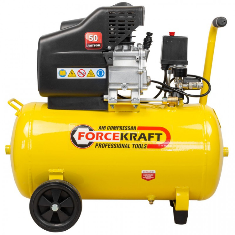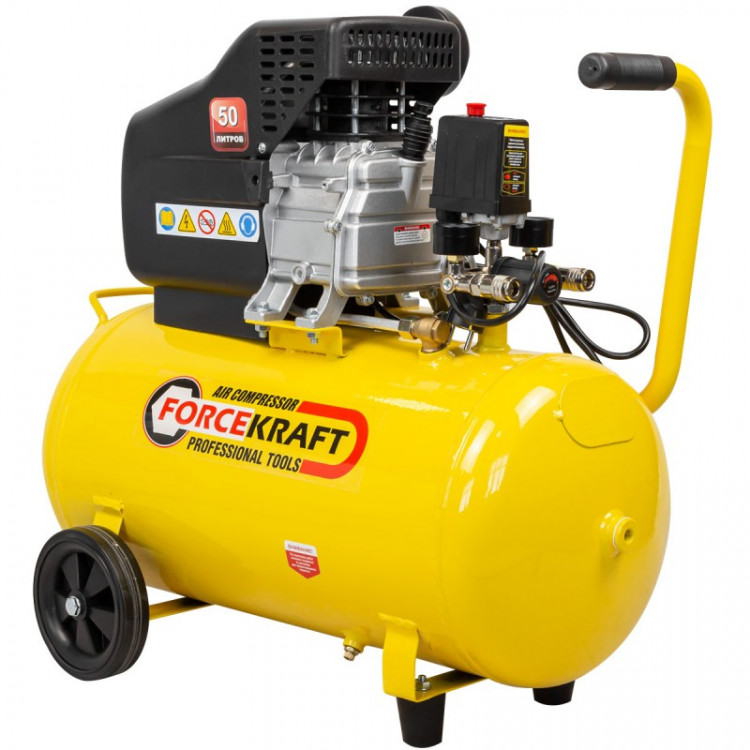 Компресор поршневий з прямим приводом FORCEKRAFT FK-BM25/50 призначений для використання в автомайстернях, лабораторіях та інших та інших об'єктах, де потрібен пневмоінтсрумент. Великий об'єм ресивера – 50 л – зробить роботу продуктивнішою та заощадить час. Для зручності на корпусі є ручка та колеса для передвіщення. Особливості Вид - повітряний компресор поршневий.Привід – прямий.Електроживлення – 220 В.Потужність - 1,5 кВт.Максимальний тиск – 8 бар.Продуктивність – 180 л/хв.Об'єм ресивера – 50 літрів.