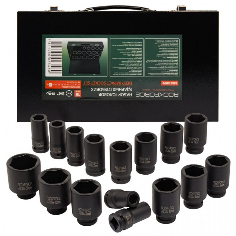 HTMLНабор ударных глубоких торцевых головок RockForce RF-6162-5MPB (16 пр., 3/4"): надежность для профессионалов