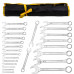 Набір комбінованих ключів WMC TOOLS WT-5261P36 — напівпрофесійний набір ключів для слюсарно-монтажних робіт, розрахований на інтенсивне використання. Комплект поєднує в собі практичність, надійність і широкий функціонал, що робить його відмінним вибором як для СТО, так і для особистого використання. Переваги та особливості: - Широкий діапазон розмірів (6–36 мм) — перекриває більшість стандартних кріпильних з’єднань, дозволяючи працювати без необхідності підбору додаткового інструменту. - Комбінована конструкція (ріжковий + накидний профіль) — забезпечує універсальність: швидкий доступ до кріплення з одного боку та надійне захоплення з іншого. - 14-гранна накидна частина — збільшена площа контакту знижує ризик зриву граней і дозволяє працювати з високо навантаженими з’єднаннями. - Міцна вуглецева сталь — витримує високі механічні навантаження, не деформується та зберігає робочі характеристики навіть при регулярній експлуатації. - Хромонікелеве покриття — захищає інструмент від корозії, полегшує догляд і подовжує термін служби. - Зручне зберігання — набір постачається у міцному тканинному полотні, де кожен ключ має своє місце, що спрощує транспортування та дозволяє швидко знаходити потрібний розмір.