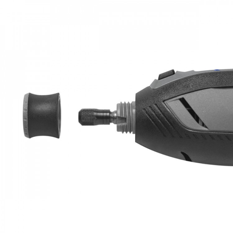 - Інструмент оснащений цангою з максимальним діаметром затиску 3.2 мм, що забезпечує сумісність з більшістю стандартних аксесуарів Dremel. Система швидкої зміни приладдя EZ Twist з вбудованим ключем значно спрощує процес заміни оснащення, даючи змогу виконувати його швидко і без використання додаткового інструменту. Це особливо зручно при частій зміні операцій під час одного проекту.
