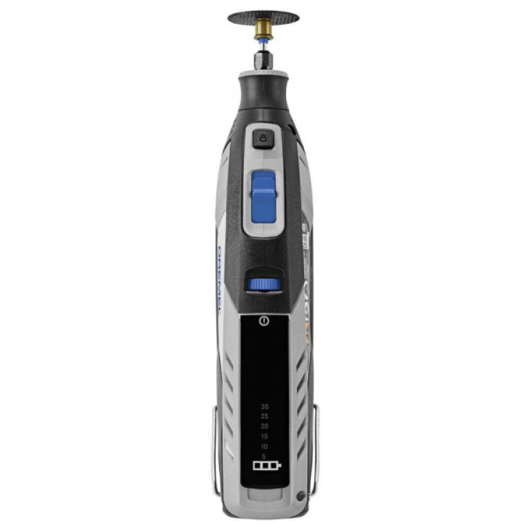 - Регульована швидкість обертання в діапазоні від 5000 до 30000 обертів за хвилину дає змогу точно адаптувати інструмент під конкретний матеріал і завдання, чи то акуратне гравіювання, шліфування, різання металу, чи то обробка пластику. Шість попередньо встановлених рівнів швидкості спрощують налаштування і допомагають швидко вибрати оптимальний режим роботи.