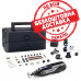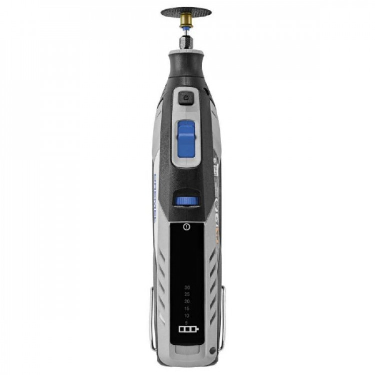 - Для виконання різання, шліфування, полірування, гравіювання, фрезерування, свердління та інших завдань використовуються 5 насадок і 65 аксесуарів, акуратно розміщених в коробці Dremel з регульованими перегородками для індивідуального зберігання.