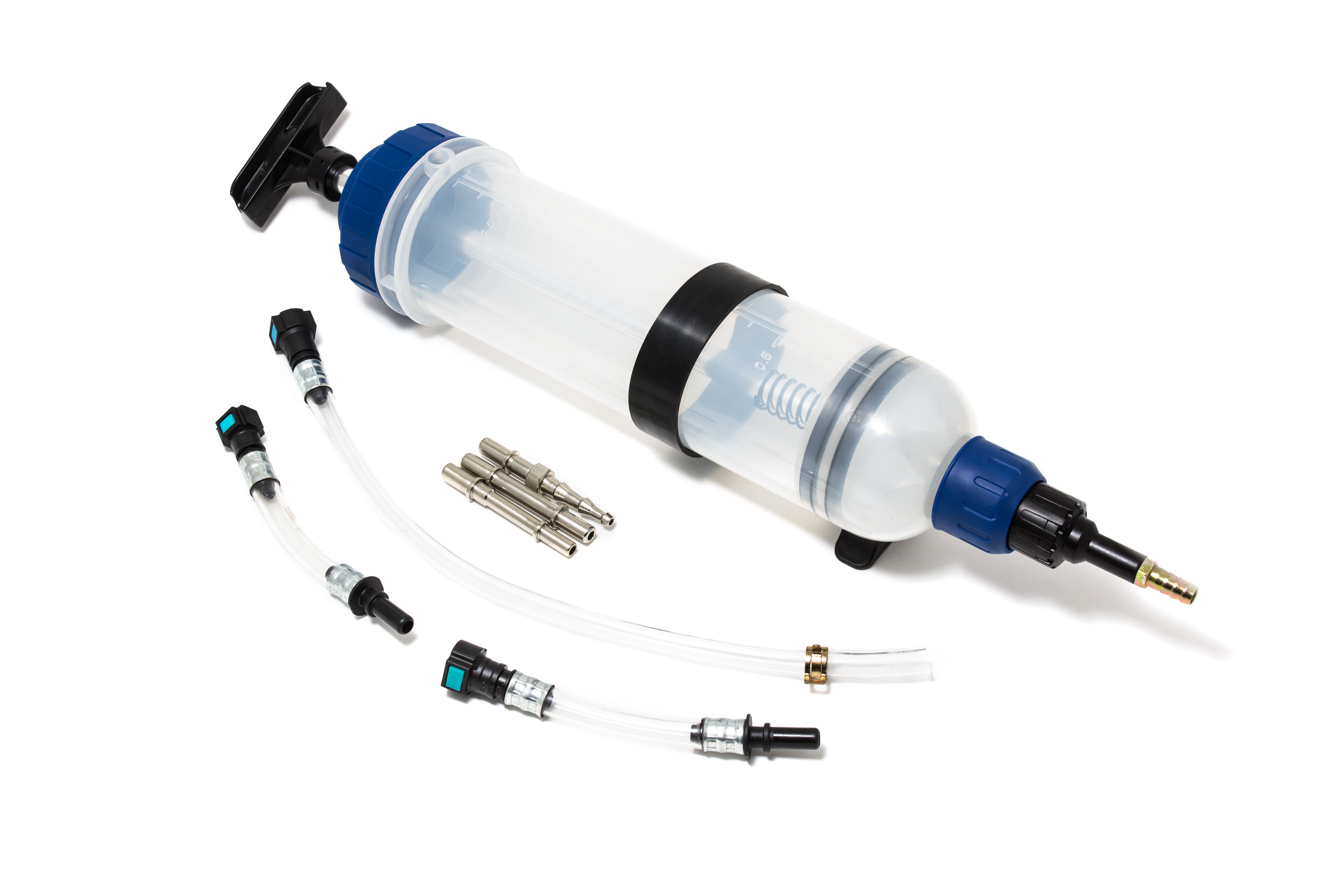 Шприц-дозатор з насадками для створення тиску в паливній системі автомобіля і визначення її герметич