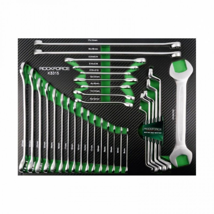 Ложемент 3:- Ключі комбіновані: 8, 9, 10, 11, 12, 13, 14, 15, 16, 17, 18, 19, 21, 22, 24, 27 мм;
