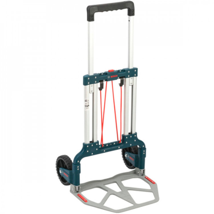 Легкий і маневрений складний візок з алюмінію для перевезення систем зберігання, мішків, ящиків. Розрахований на вагу до 125 кг, при пересуванні по сходах — до 60 кг. Складні колеса, бічні стійки на опорній поверхні, стрічка для фіксації.