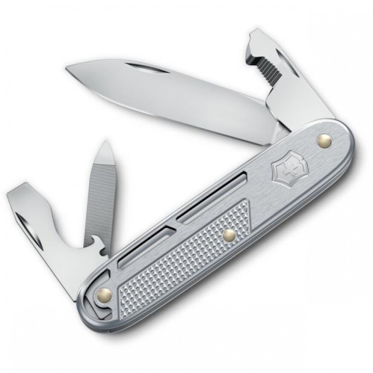 Відкривачка для коробок; Велика пласка викрутка; Велике лезо; Мала пласка викрутка; Відкривачка для пляшок; Очищувач для нігтів; Паз для зняття ізоляції; Пилочка для нігтів; Фіксатор відкритого леза
