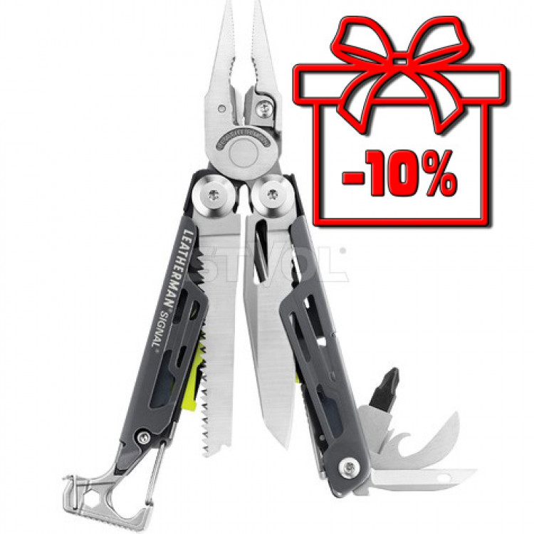 Модель Signal поєднує в собі звичну всім багатофункціональність і нові інструменти - алмазне точило для звичайних і серрейторних ножів, кресало і свисток.Signal поєднує в собі 19 різних інструментів, з ним ви будете почувати себе впевнено в будь-якій ситуації і в будь-якому місці - на природі, в гаражі або на дачі.