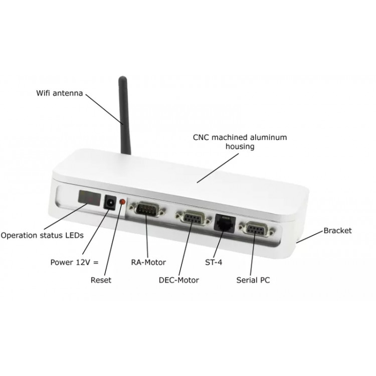 Потужний блок керування дозволяє здійснювати дистанційне курування через браузер, ASCOM - сумісним програмним забезпеченням за допомогою вбудованого бездротового драйвера. Це програмне забезпечення відрізняється тим, що ви можете написати власний код та імпортувати. Створіть завдання Мессьє або список об’єктів, які ви хочете сфотографувати, і завантажте цю інформацію в програмне забезпечення. GPS сумісність та автоматичні налаштування часу/дати залежать від додаткового приймача на комп’ютері, планшеті чи смартфоні.