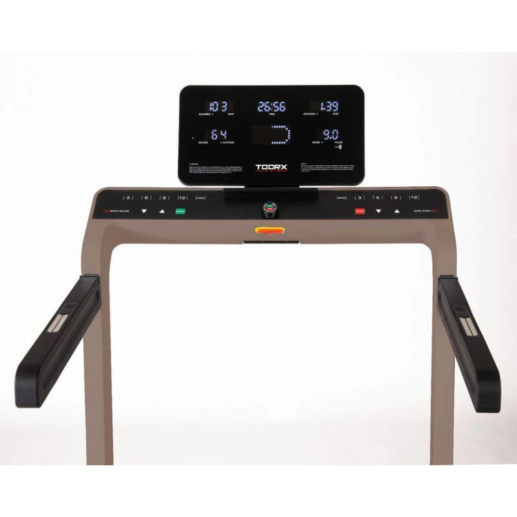 Консоль обладнана 5 білими LED-дисплеями + 1 LED-дисплей з графікою, які відображають ключові параметри тренування, такі як пульс, дистанцію, нахил, висоту, час, кількість кроків, темп, швидкість та витрату калорій, забезпечуючи повний контроль над тренуванням і прогресом.