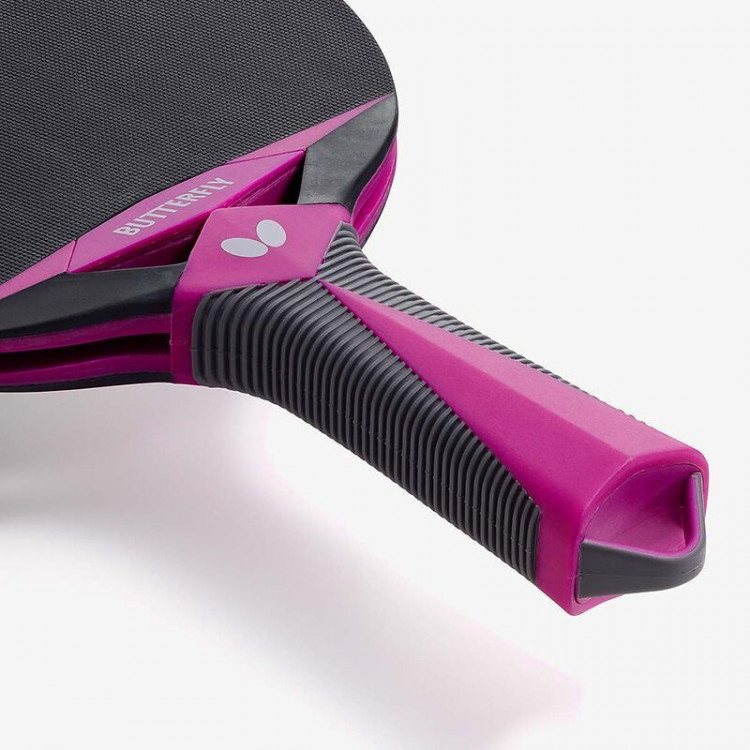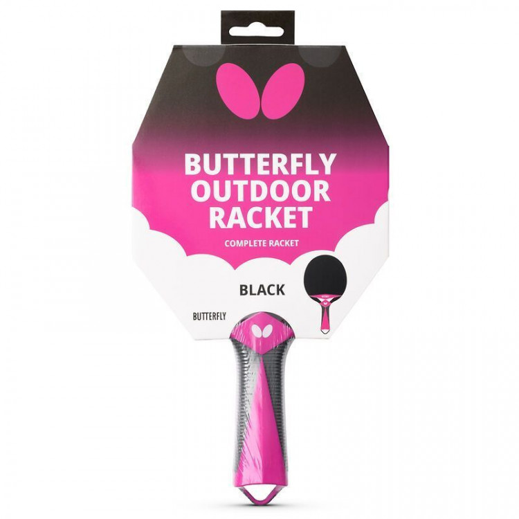Butterfly Outdoor Racket — ракетка для настільного тенісу, спеціально розроблена для гри на відкритому повітрі в саду, парку або на терасі. Завдяки високій міцності та стійкості до погодних умов вона забезпечує надійну та комфортну гру незалежно від зовнішніх умов. Виразний дизайн у чорному та маджентовому кольорах виділяє ракетку серед інших і додає яскравості кожному матчу. Відмінне співвідношення ціни та якості робить її ідеальним вибором для активного відпочинку на свіжому повітрі.