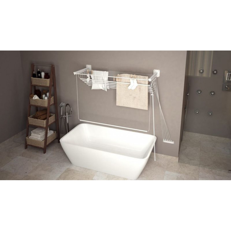 Сушарка для білизни настінна Colombo Sali E Stendi 120 (SG120) - це практичне рішення, яке дозволить зекономити простір та полегшить домашні клопоти. Завдяки мотузковому механізму робочі стрижні легко опустити та розвісити одяг. Для захисту підлогових покрівель від вологи з одягу, дану модель можна розмістити над ванною. Всі металеві елементи оброблені антикорозійним покриттям, що значно подовжує термін експлуатації.
