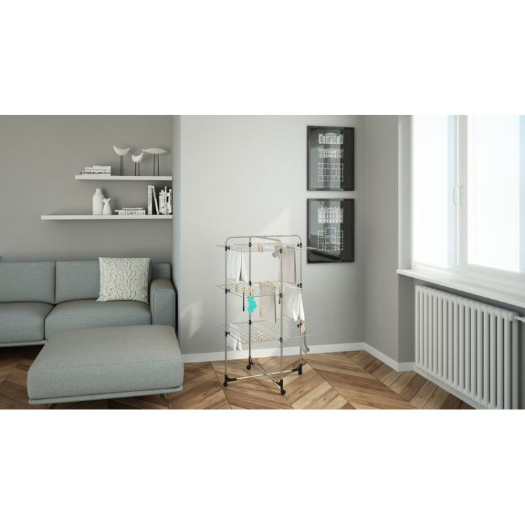 Сушарка для білизни підлогова Colombo Icaro 30 (ST194/3) - це чудовий компроміс між необхідністю сушіння великої кількості одягу та економією простору. Конструкція постачається в зібраному стані, вам достатньо тільки закріпити коліщата та пластикові накладки. Модульна система забезпечує можливість розміщення сушарки в душовій кабіні або біля стіни, склавши одну сторону. Сушіння довгих речей не є проблемою для Colombo Icaro 30, закріпіть речі за верхню секцію та складіть нижні, які перешкоджають вільному звисанню. Загальна робоча довжина поверхні тридцять метрів, розрахована на максимальне навантаження до дев'яти кілограмів.
